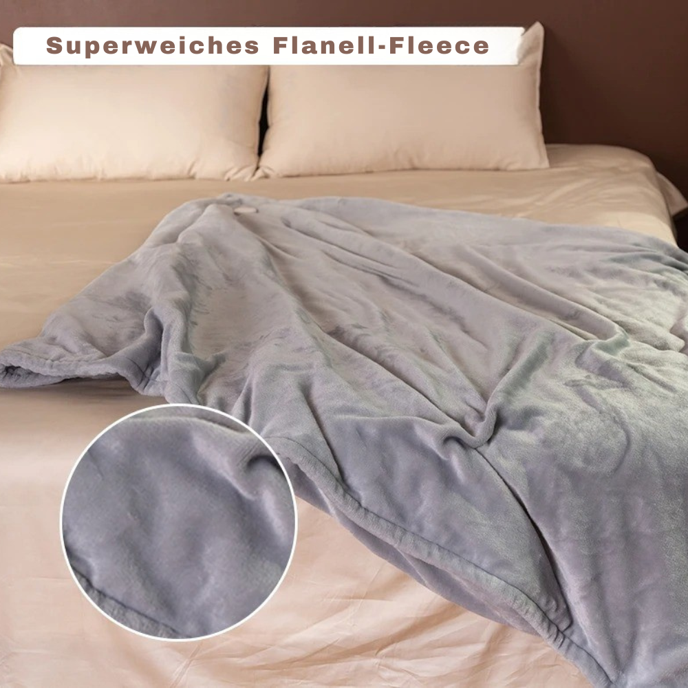 Die WärmeNest Decke besteht aus Premium-Flanell-Fleece – einem ultraweichen, atmungsaktiven Stoff, der Wärme optimal speichert.